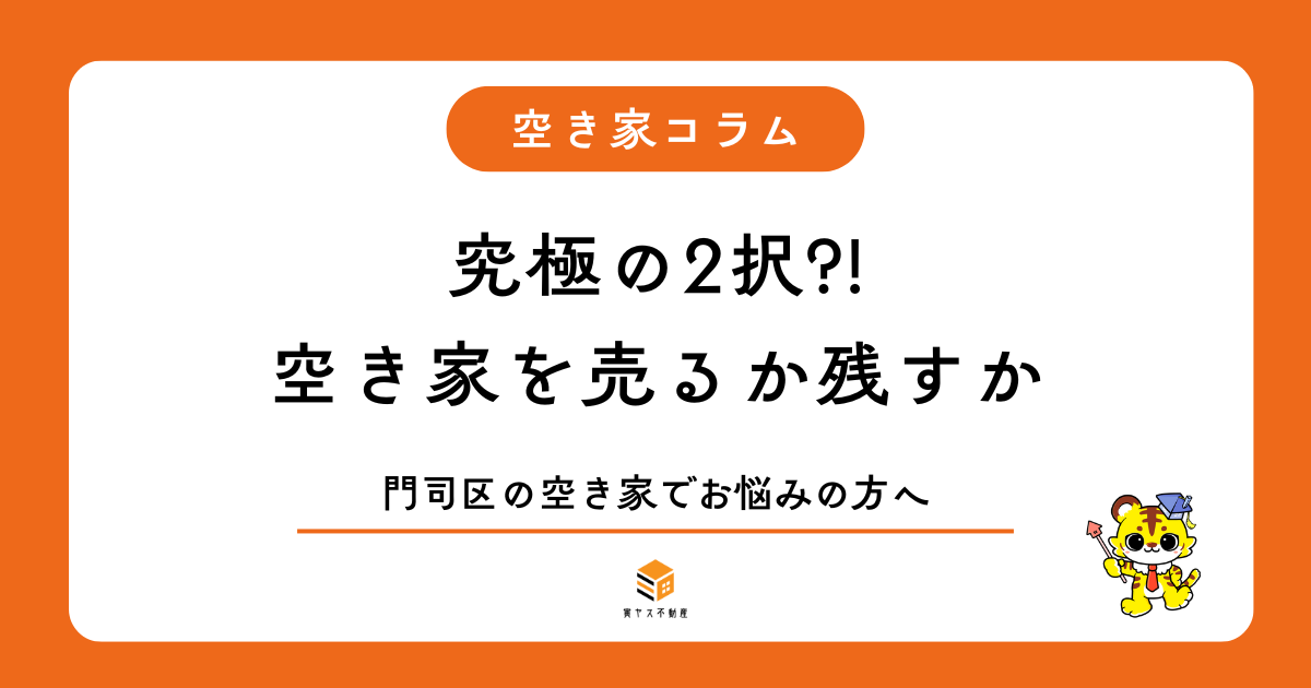 空き家って、いきなり「売る?残す?」の二択を迫られるのが一番しんどいところですよね。固定資産税、草刈り、近所の目。相続の話も止まっている……。この段階で相談が来るのは、むしろ普通のことです。 私は門司区専門・空き家特化の不動産屋として、結論...